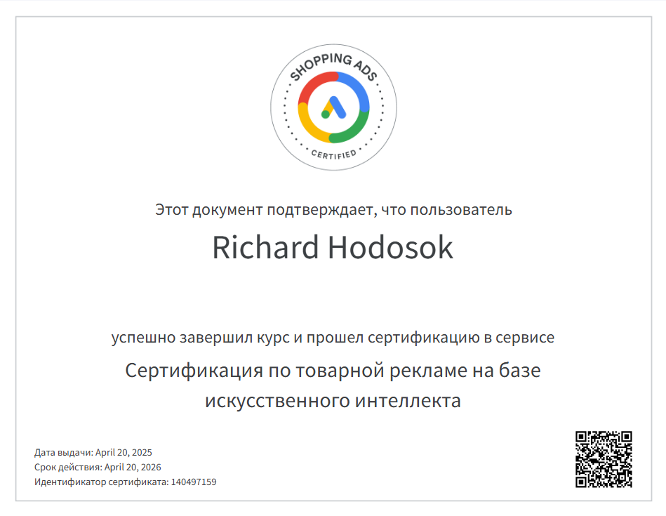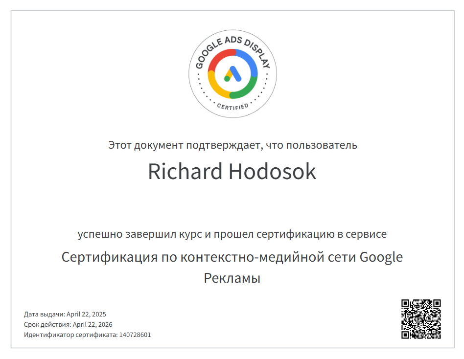 Сертификаты по рекламе