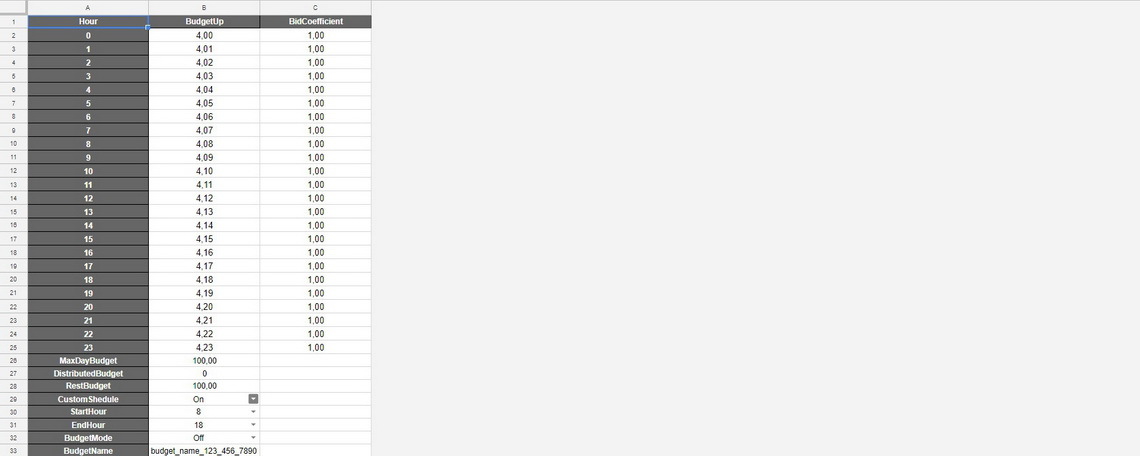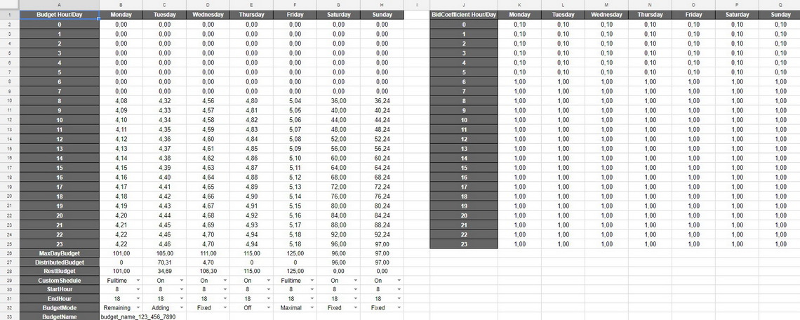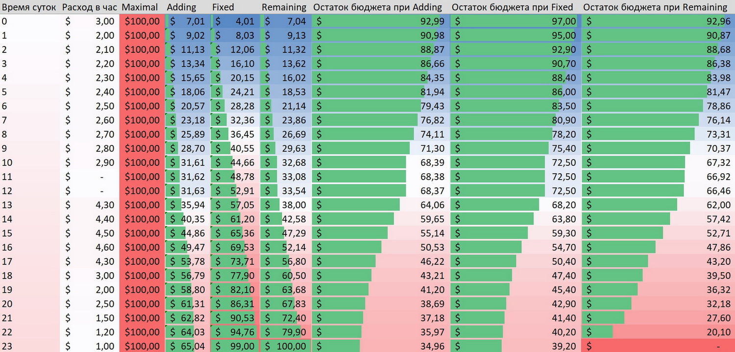 Также Вы можете задать определённый запас бюджета на нужное время суток в режимах 24/1 и 24/7.